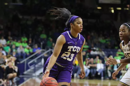 NOTRE DAME, Indiana -- The TCU women's basketball team went toe-to-toe with No. 1 Notre Dame on the road, but the Irish used a late run to pull ahead to a 92-59 win at Purcell Pavilion on Saturday afternoon.