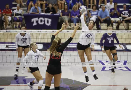 OMAHA, Neb. - A dominant offensive and defensive performance on Saturday led the TCU volleyball team to a 3-0 (25-12, 25-12, 26-24) sweep of Chattanooga in the D.J. Sokol Arena in Omaha, Neb., as the team concluded competition at the Bluejay Invitational.