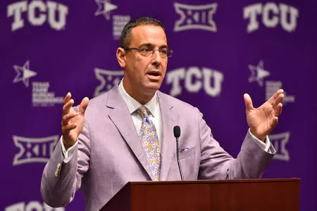 FORT WORTH, Texas - TCU Athletics is holding its annual Town Hall Meeting on Tuesday night at 6:30 p.m. inside Ed and Rae Schollmaier Arena. The event is free to the public and will also be streamed for free on GoFrogs.com.