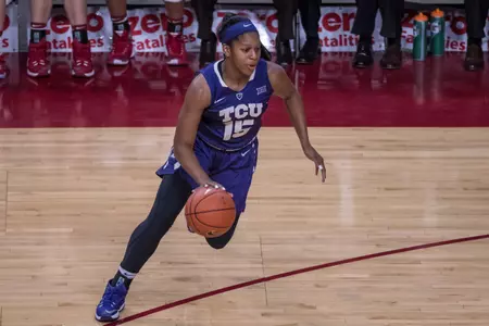 Toree Thompson led TCU with 17 points, her TCU career high, including 4-of-6 from long range. Jada Butts (14), Amy Okonkwo (12) and Jordan Moore (10) all joined her in double figures.