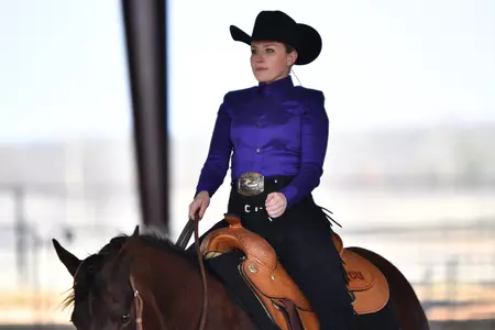 Seniors Rylee Morgan and Megan McMullen won their points for the Purple and White in Horsemanship, with McMullen earning the lone MOP for TCU. Freshman Josie Mootz also posted a 74.5-point victory to Sarah Miller's 66.5.