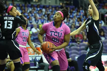 TCU (12-14, 4-11) played its annual Play4Kay game and wore pink uniforms. The Frogs were hot early and led by as many as 13 points late in the second quarter. Kansas State (19-8, 9-6), however, began to chip away in the second half and eventually took its first lead with under two minutes to go in the game.