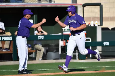 TCU bounced back from the early deficit with one swing of the bat in the bottom of the first. With two on and one out, Luken Baker launched his team-leading third home run of the season, a 3-run shot that put the Frogs up 3-1.