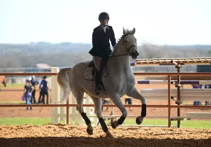 In Equitation over Fences, Jayme Omand scored the lone point for the Purple and White after posting a one-point victory over SMU's Alexis Graves.