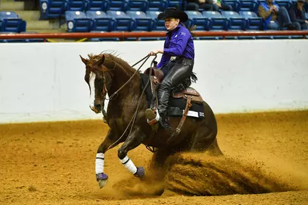 Back in the Western arena, freshman Laska Anderson gave a push for the Frogs with her ride on Zip which would earn her a score of 130.5, eventually downing Aspen Crew for a Purple and White point. Megan McMullen came out poised on Chili, dropping Kaylee Mellott's 139-point ride with her own ride of 147.5 points. Rylee Morgan finished it out for the Frogs on Otto, earning the half a point TCU needed to take Horsemanship 3-0.