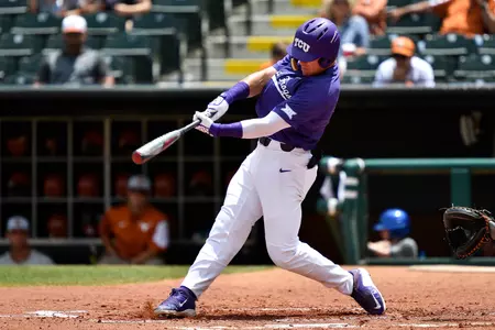 TCU wasted little time recovering from a Texas lead-off home run, striking for a quartet of runs in the bottom of the first. Zach Humphreys tripled home Austen Wade to tie the game and scored on a grounder from Cam Warner. Following a walk to Connor Wanhanen and a base hit from Elliott Barzilli, Ryan Merrill doubled to the right field corner to drive in two more.