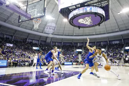 It was the first meeting between the schools since TCU upset the then-No. 1 Jayhawks in the quarterfinal round of the Big 12 Tournament last March. The Horned Frogs went on to win the NIT championship, and started this season with a 12-game winning streak before losing two of its first three games in Big 12 play.