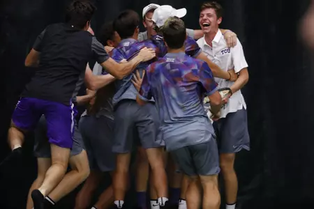 FORT WORTH, Texas - In a match that had the largest crowd on hand for the season, the No. 9 TCU men's tennis team put on a good show as the Horned Frogs recorded a 4-2 victory over No. 14 Oklahoma on Friday night at the Bayard H. Friedman Tennis Center to mark the team's ninth straight win.