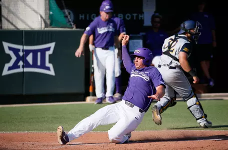 FORT WORTH – TCU scored early and often in picking up a 10-4 victory over West Virginia on Saturday afternoon to even the series a game apiece. Nine Horned Frogs tallied a hit and five drove in a run in the victory.