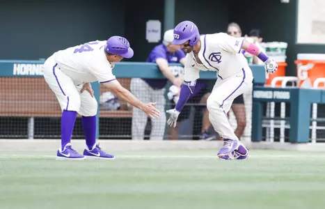 West Virginia pulled within one, 4-3, on a Tyler Doanes inside the park home run in the fourth, but the Frogs had an answer with two insurance runs in the fifth. The Frogs worked five walks in the inning to score the two runs. Humphreys and Connor Wanhanen drove in the runs in the frame.