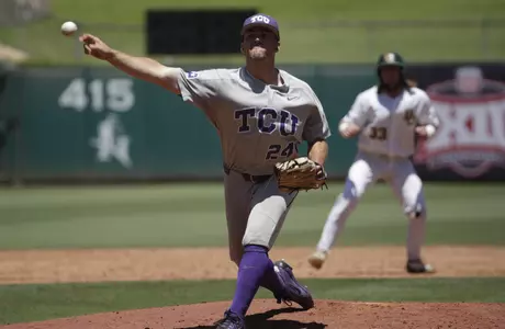 TCU battled back from a 3-0 deficit after the first inning to eventually take a late lead. Connor Wanhanen made it a 3-1 game in the second and A.J. Balta's first home run of the game pulled the Frogs within one, 3-2.
